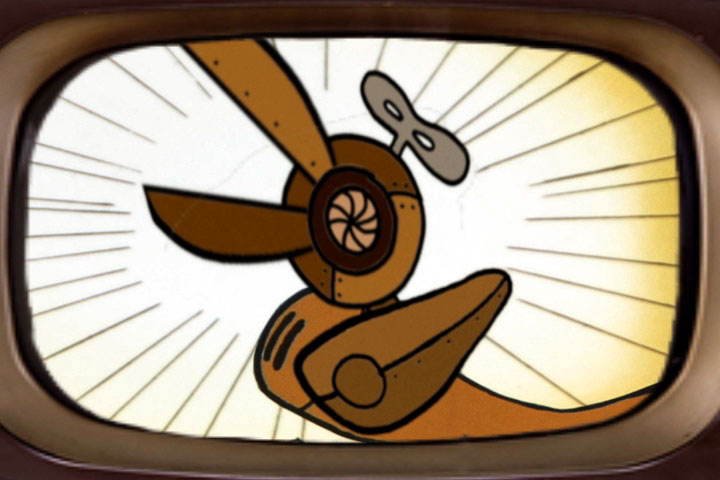 火の元を感知して大声で叫ぶ鳥を発明しようと試みる助手。失敗を重ねついに完成するが…。